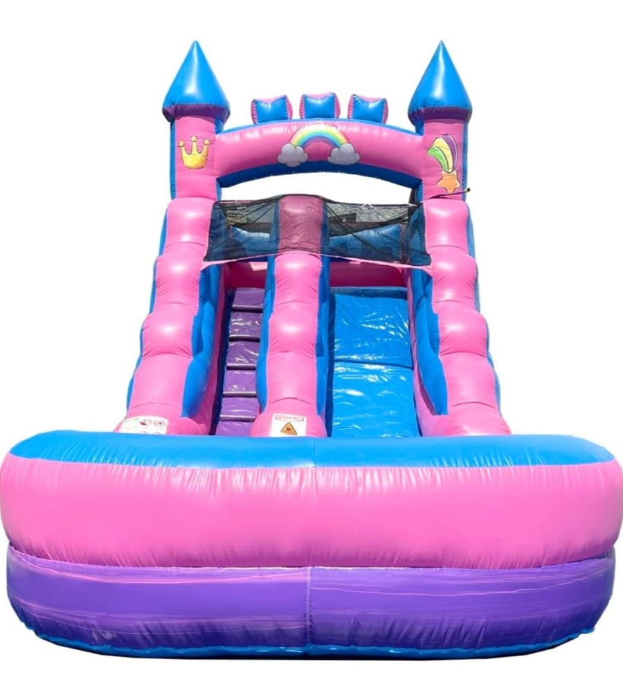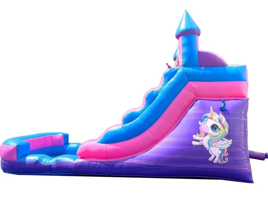 The Pink Unicorn slide is perfect for your little princess and her unicorn fantasies and it can be used as a dry slide and water slide! This slide is a single drop slide and is suitable for up to 2 kids.