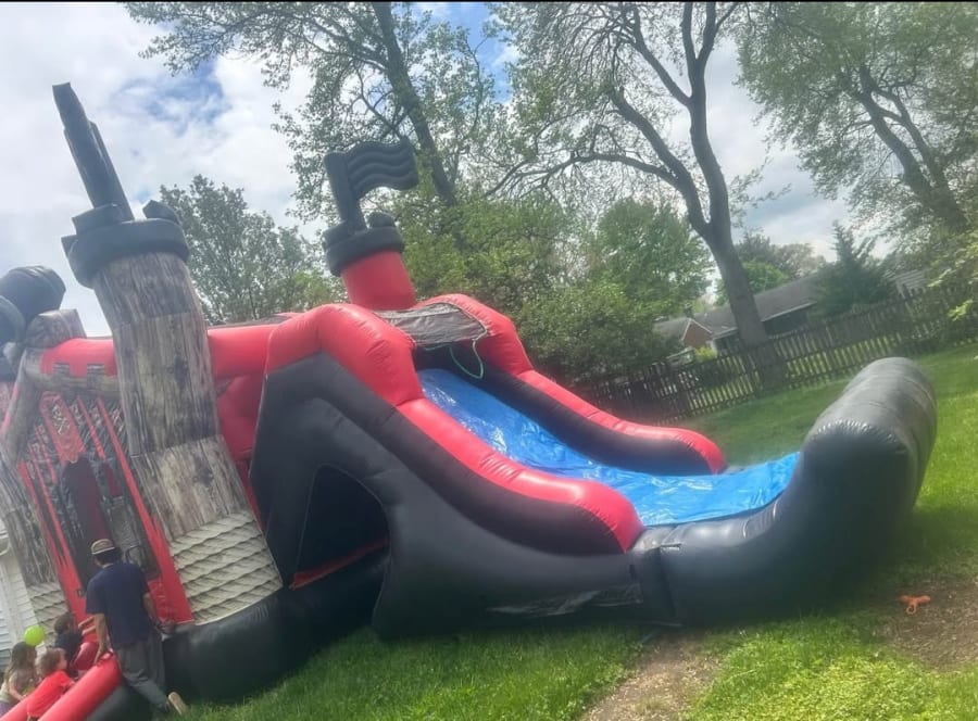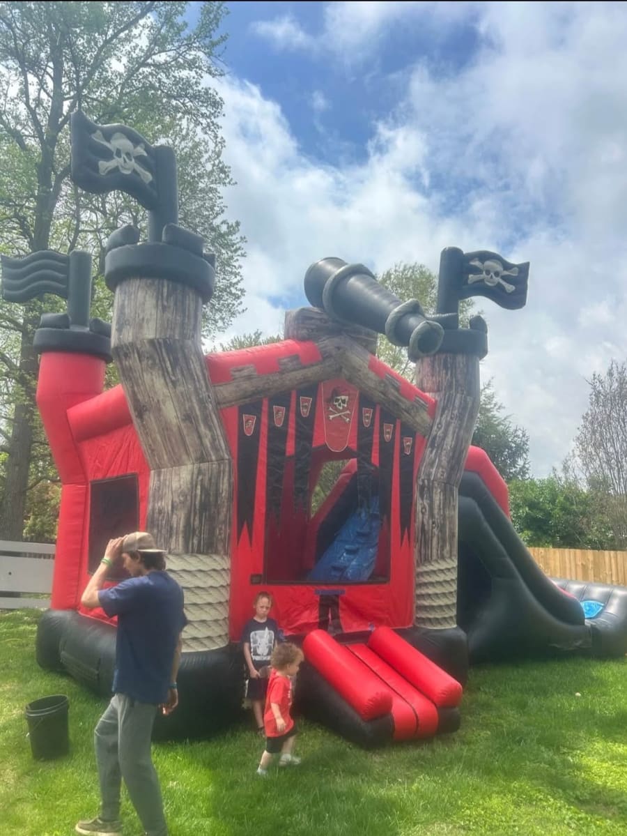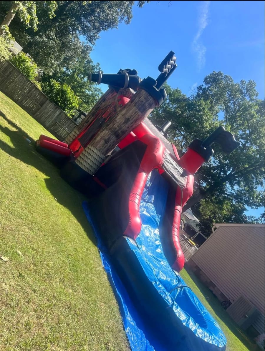 ARRRRR! The Pirates Revenge Wet/Dry Combo is perfect for those hot summer days that can be used as a dry slide combo unit or with a water slide pool attachment. Enjoy fun with a big bounce area and basket ball hoop inside. With reinforced seams and a decent bouncing area it's suitable for up to 5-6 kids at a time.