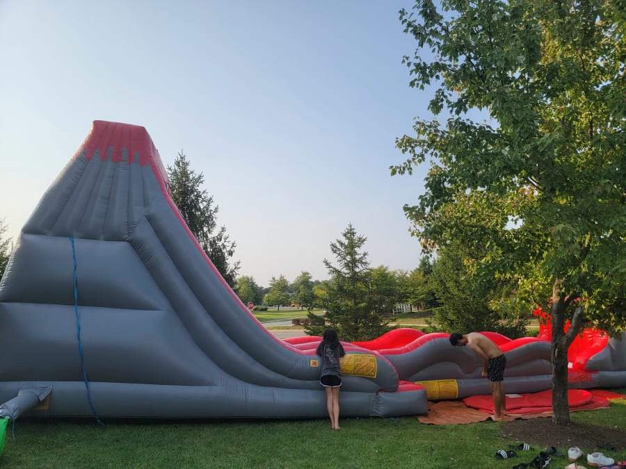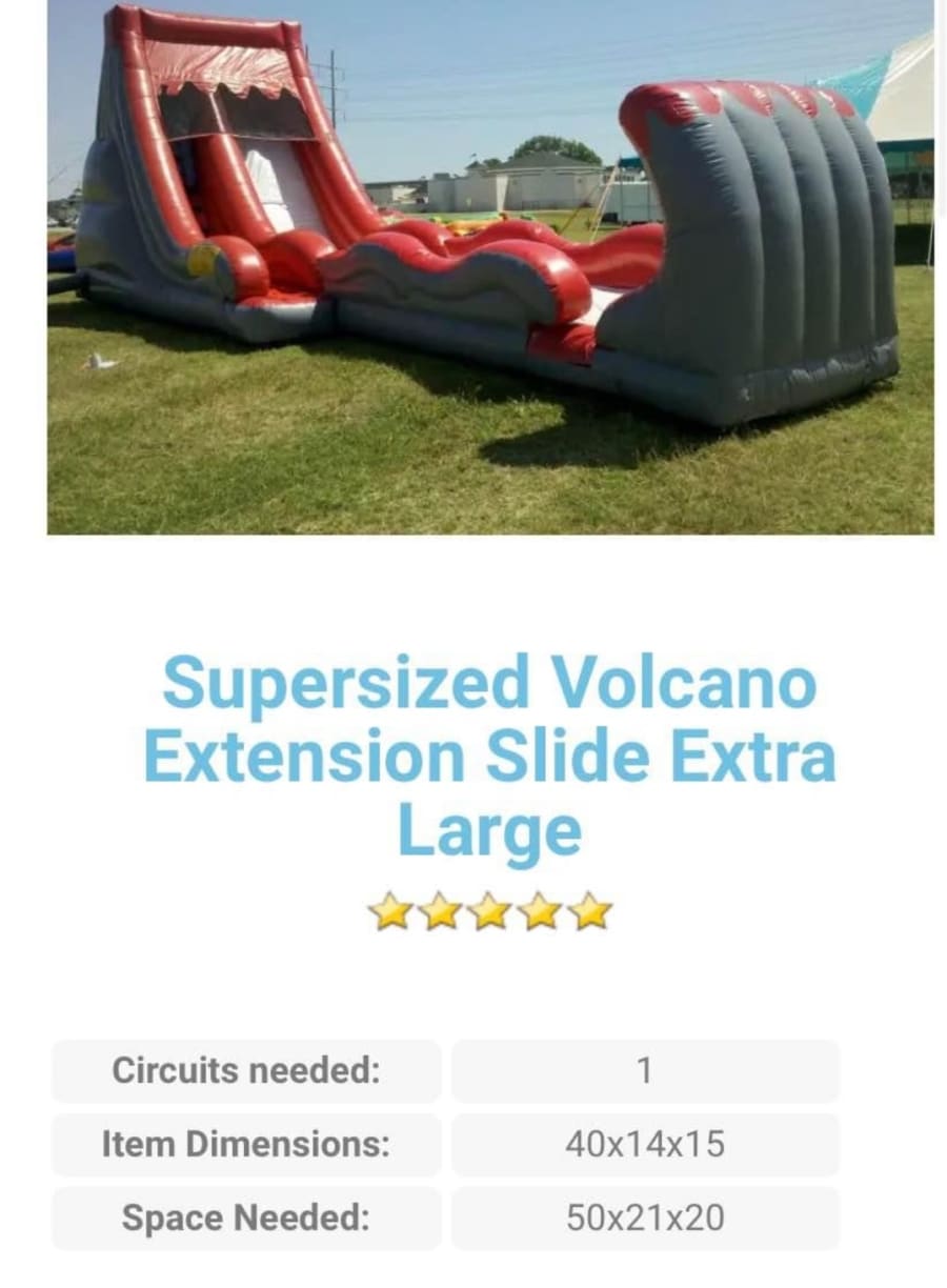 The Volcano slide is fun steep drop that delivers a thrilling time and comes with the crash wall extension slide attachment, so everyone is guaranteed to have a blast! This slide is a single drop slide and is suitable for up to 2 kids or 1 Adult at a time.