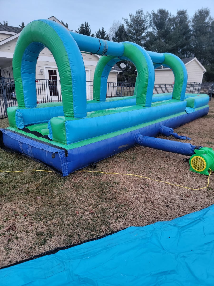 To book this Pool Slpash SlipNSlide, just use the big buttons below - you can even check its availability against our live diary. Our innovative online booking system collects all the information we require, and we will confirm your details with a phone call. Or, if you have any questions about this or any other bouncy castle, or anything other services we offer, call us now on 703.659.6400.